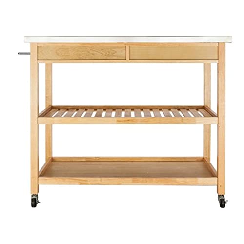 Home Kitchen Furniture FEER Moveable Kitchen Cart with Stainless Steel Table Top Two Drawers Two Shelves Kitchen Trolley Cart Dining