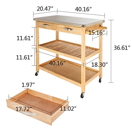 FEER Moveable Kitchen Cart with Stainless Steel Table Top Two Drawers Two Shelves Kitchen Trolley Cart Dining