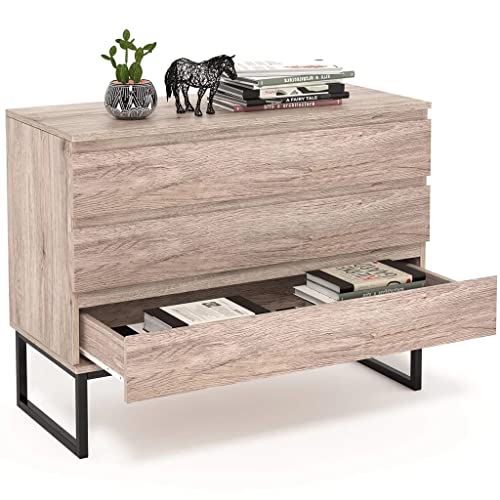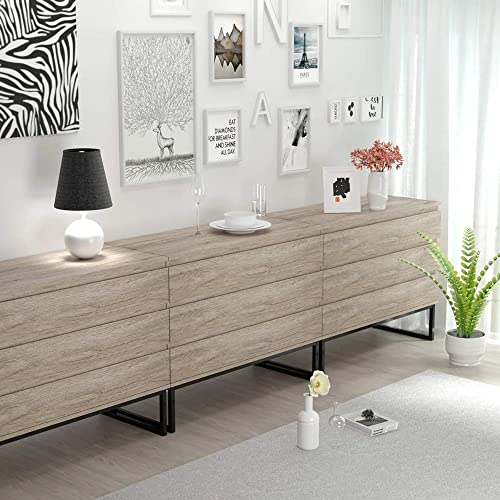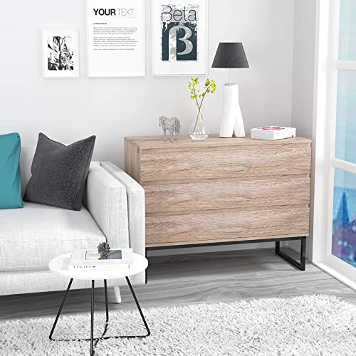 - The sideboard is decorated in natural tones and provided with a black steel, fits well in different furnishing styles, such as living area, bedroom or in the dining room.