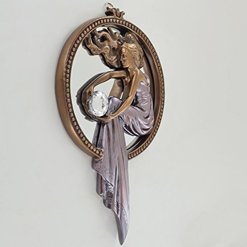 Fiesta Studios Lady Holding Ball Mirror Frame, Cold Cast Bronze Wall Decor