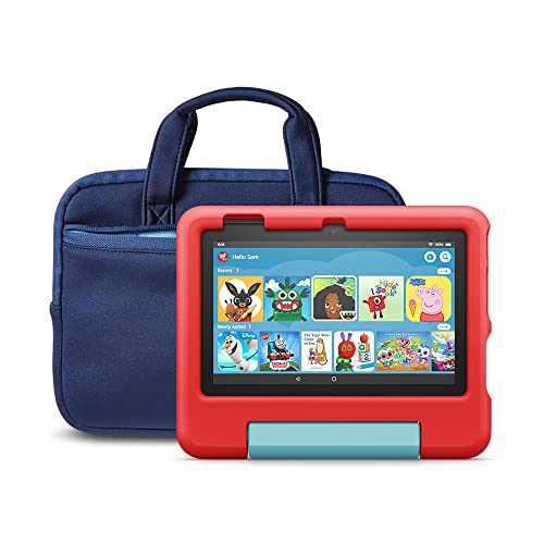 Home Computers & Accessories Fire 7 Kids tablet (32 GB, Red) + NuPro Zipper Sleeve (Navy/Blue)
