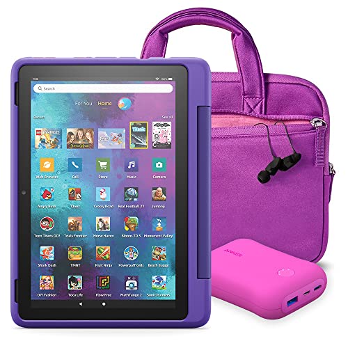 Home Computers & Accessories Fire HD 10 Kids Pro tablet, Doodle Kid-Friendly Case + NuPro Zipper Sleeve, Purple + Kids Portable Charger, Pink