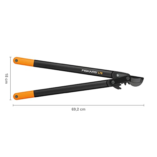 - Box contents: 1x Fiskars PowerGear II bypass gear lopper L78, length: 70 cm, weight: 1.06 kg, material: precision steel/non-stick coated, color: black/orange, 1000584