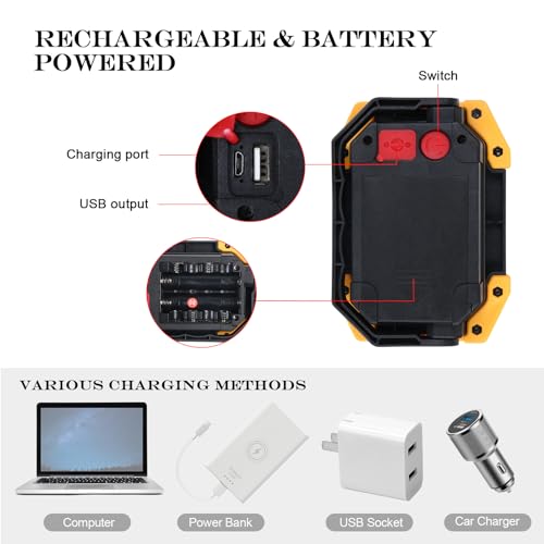- 🌟【Wide Usage】Our rechargeable spotlights is perfect for indoor & outdoor activities like car repairing, workshop, construction site, working, camping, emergency, hiking, hunting, exploring and so on.