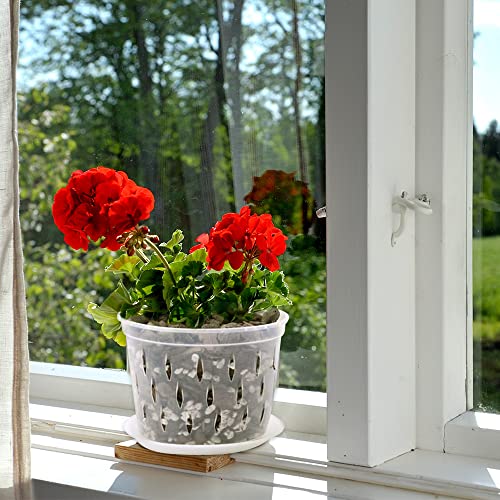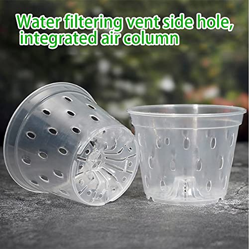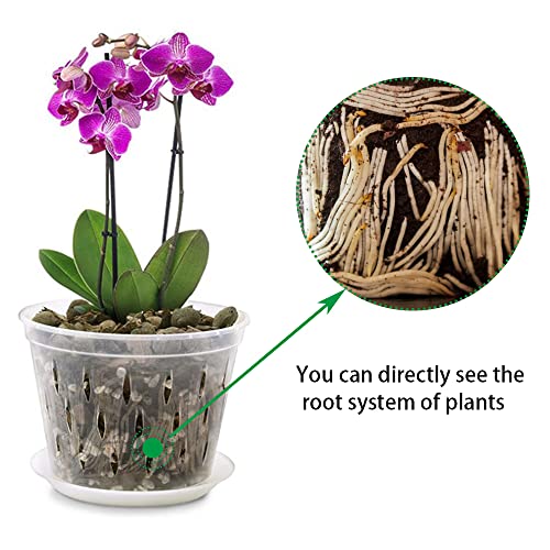 - [Transparent Orchid Pot]: Transparent material, allowing you to observe the growth of plant roots and soil moisture at any time. Each plastic plant pot comes with a saucer so you can catch excess water and falling soil, and keep your floor or table clean. Transparent orchid pots are also suitable for any decoration.