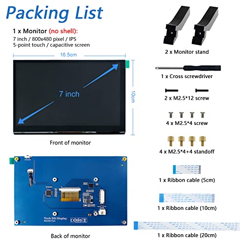 - Screen parameters -> 7 inch, 800x480 pixel, TN type, 5-point touch capacitive screen.