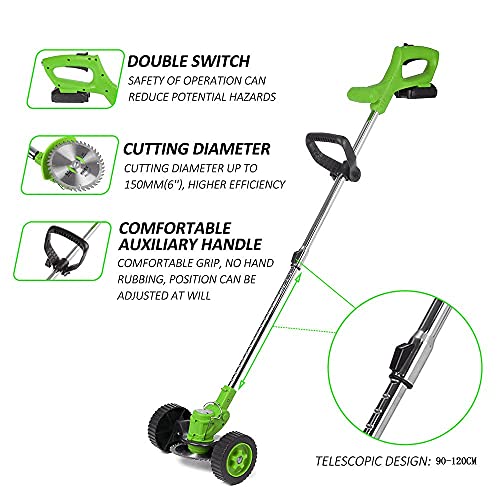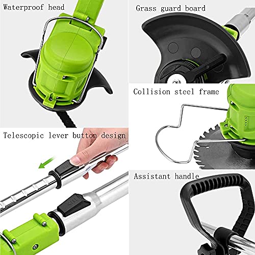 - [RECHARGEABLE ELECTRIC MOWER]: Electric retractable handle for weeds 0-130cm, not easy to slide, can accommodate users of different heights; It can be used by people of different heights. It is light and simple, only 3.97 lbs, so the trimmer can be easily used by seniors and women.