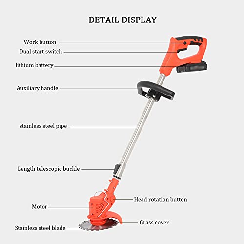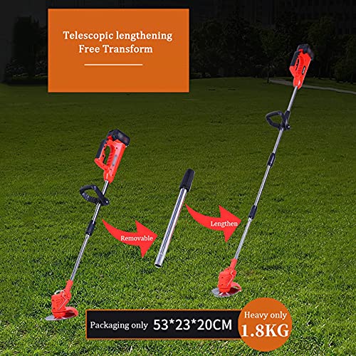 - 【Telescopic pole】 adjustable telescopic pole 30cm (the electric mower adjustable total length: 90 ~ 120cm, removable and extended, up to 180cm) to adapt to the height and posture of the user