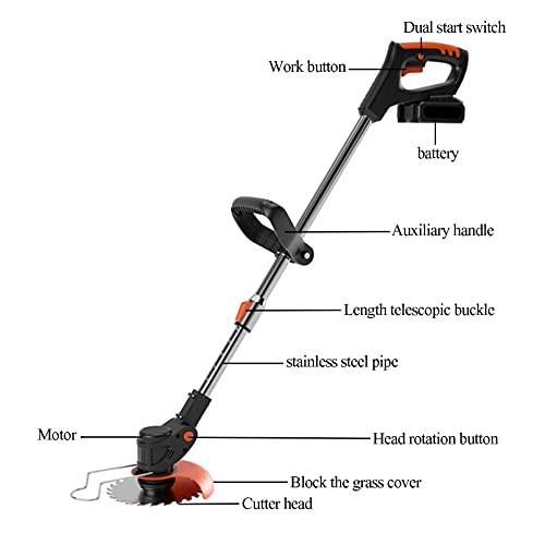 • [LIGHTWEIGHT DESIGN] The portable cordless lawnmower features an adjustable shaft, which can be freely adjusted from 1cm to 30cm, so that everyone can mow the lawn comfortably. The body of the portable lawnmower weighs only 1.8kg (without battery), is lightweight and portable, and can be easily used by women and the elderly. Working with the double control switch is safer.