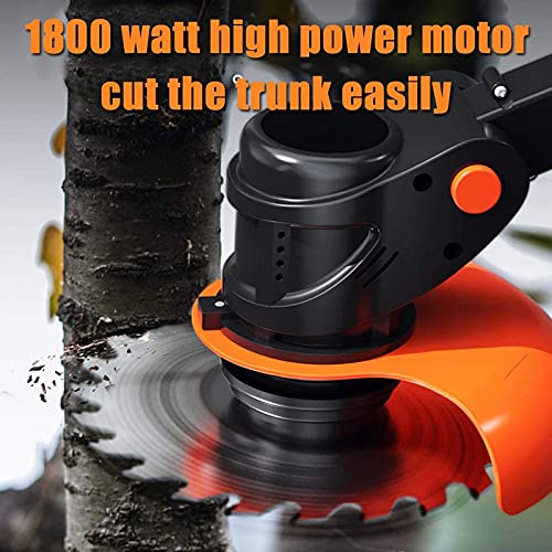• [EASY TO CUT] The speed of the cutting line reaches 6000 rpm, the power of 1800W is high. The blade becomes very sharp at high speed. It can cut the lawn and small weeds. It will not be damaged when it hits hard objects. Meet your needs.