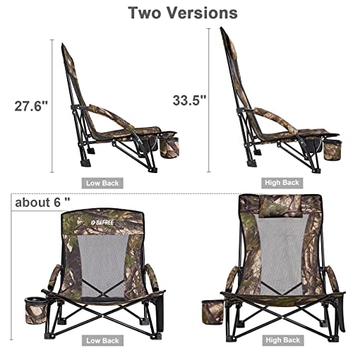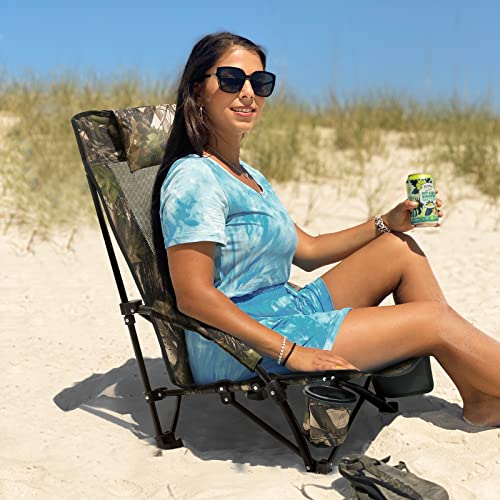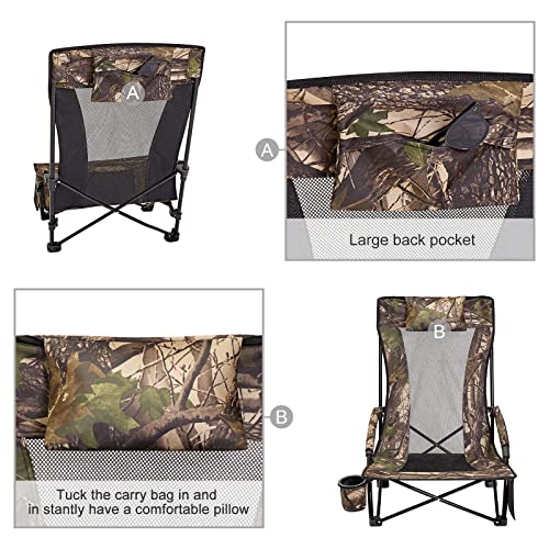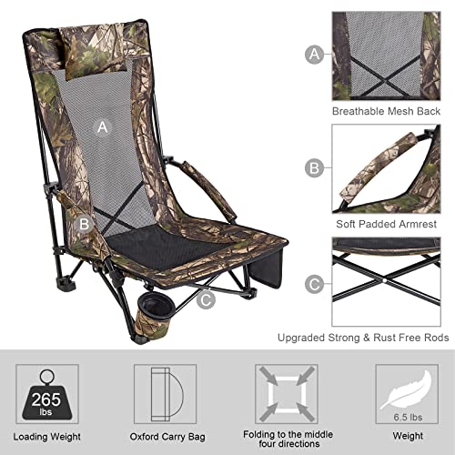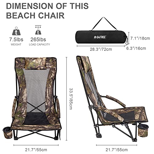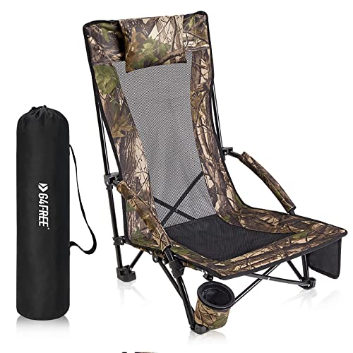 G4Free Upgraded Low Beach Chair Camping Chairs Compact Concert Lumbar Back Support Festival Chair with Carry Bag