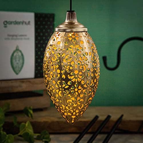 • [solar lights] - The perfect gift, to adorn your garden, hook included. Not sure where to hang your garden solar lanterns? We've got you - the outdoor solar lantern comes with a free Shepherds Hook.