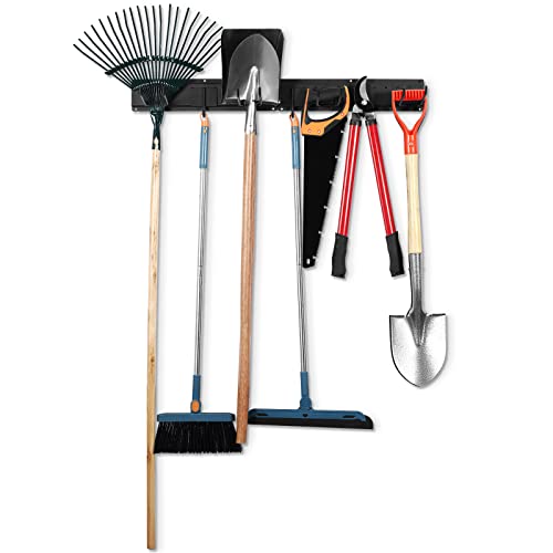 - ✅PERFECT STORAGE SOLUTION: Made from heavy-duty material metal for various tools like rakes, shovel, spade, broom. 7 hooks, perfect for storing garden and yard tools .