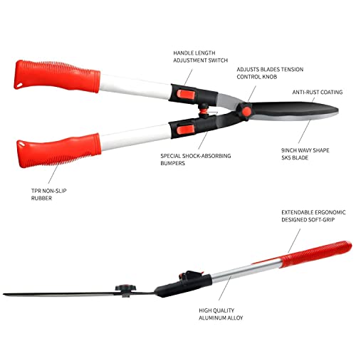 GARTOL Telescopic Hedge Shears,Long Handle Garden Shears with Very Sharp Sk5 Wavy Carbon Steel Blades,Anti-Slip Grip and Premium Rust-Resistant S