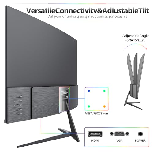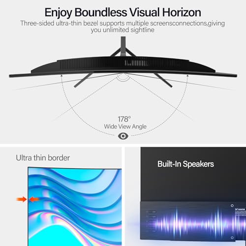 - 24” Ultra-Thin & Slightly Curved Monitor: 2800R degree slightly curved monitor adopts a new generation of VA screen, covering 98% of the sRGB color gamut, 1920x1080p resolution display, 100Hz refresh rate and 5ms response time, allowing you to smoothly read your documents, play games or watch movies.