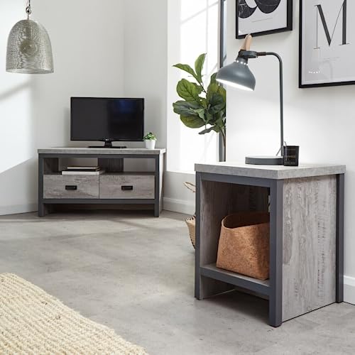 GFW Lamp Storage Drawer & Shelf +Contemporary Grey Wooden Effect Side Living, Bedside Table Or Dining Room, Wood, 43 x 39 x 52.2 cm