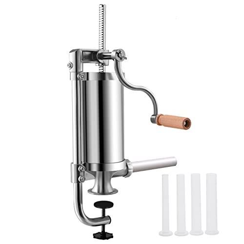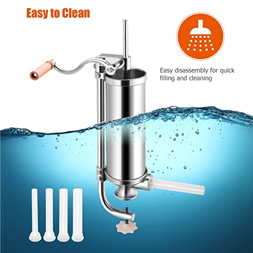 GiantexUK 1.5L/3L/3.5L/6L Stainless Steel Sausage Stuffer, Vertical Homemade Sausage Maker with 4/6 Filling Tubes, Kitchen Meat Filling Manual Ma