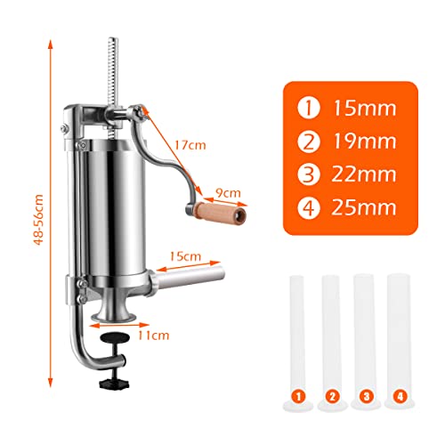 • Sausages of Different Sizes: The homemade sausage machine is equipped with 4 filling pipes of various sizes, including 15, 19, 22 and 25mm. Therefore, you can choose the appropriate tube according to your preference to make diverse sausages.