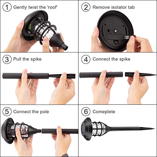 • 【Install Easily】Install in no addition tools or wiring required. Just remove the tab under the light cap, turn on the switch, pull out the bottom spike from the tube, install it and insert the solar patio light into the soft earth.