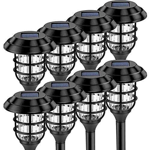 GIGALUMI 8 Pack Solar Pathway Lights Outdoor, Solar Powered Garden Lights, Waterproof Led Path Lights for Patio, Lawn, Yard and Landscape-(Cold W