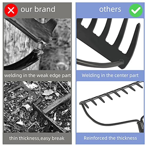 - 【Multiple Functions】Our yard rake is designed for effectively gardening. It could loosen the soil up, mix soil with fertilizers better, gather leaves, and so on.
