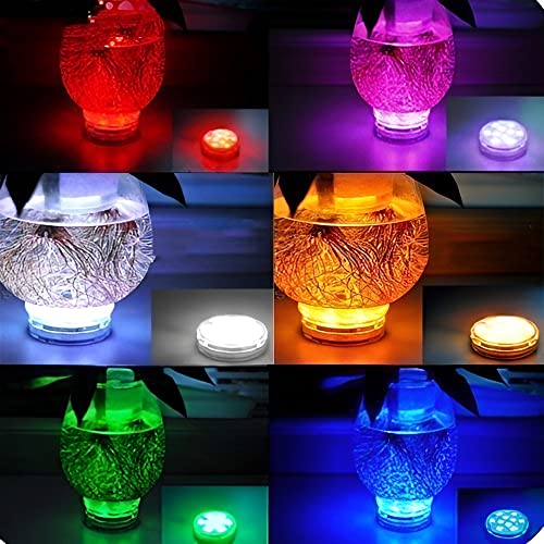 - ►[Waterproof and reusable]: IP68 waterproof, the small waterproof LED lights can be adjusted to 16 types of colours: red, green, blue, white, yellow, purple and other decorative lighting. They are perfect for lighting vases, bowls, bathroom LED light toys or other water filled containers. You can turn a boring bowl into a beautiful and exciting centrepiece.