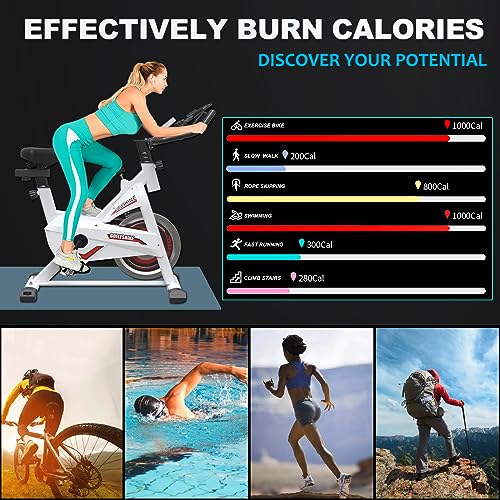 • 🚴【EXERCISE BIKE FOR HOME 】Heavy-duty steel frame of the exercise bike guarantee the stability while cycling.It supports up to 300 lbs max weight.Infinite resistance system and Belt Drive System can ensure that you are in a stable state during exercise.Provide you with a smooth and silent riding experience.Suitable for all fitness levels.