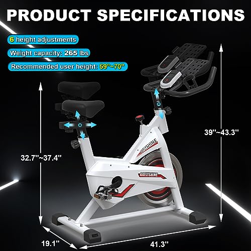 • 🚴【PERSONALIZED EXERCISE BIKE】Our ​indoor cycling bike​ comes with fully adjustable handlebars and built in arm and elbow rests.At the same time equipped with adjustable height seat. (seat adjustable height 32.7-37.4in, handlebars adjustable height 39-43.3in). The seats are ergonomically designed,and can easily moves forward/back and up/down.