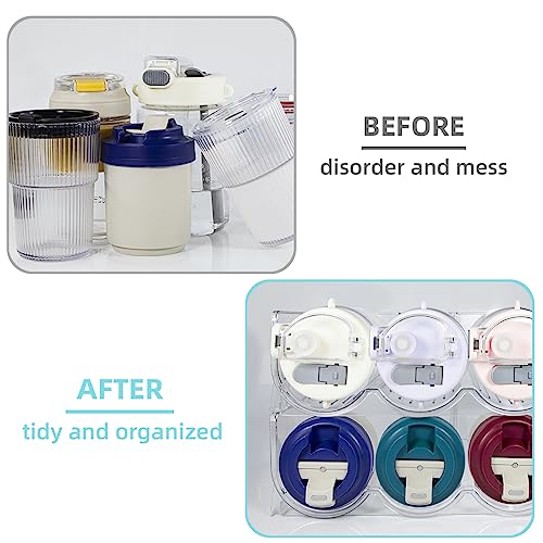 - [BEAUTIFUL AND PRACTICAL] The transparent appearance is fashionable and modern. The Golemas Water Bottle Organizer is put layer by layer in your refrigerator shelf, which is very neat and beautiful. It is very suitable for storage: vacuum cup, sports bottle, travel mug, wine, champagne, soda water, beverage bottle, drink can, and more.