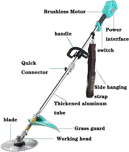 • 【Updated and upgraded weeder】: 1200W brushless pure copper motor, efficient and powerful, no-load speed can reach 6000-8000r/min; large-capacity lithium battery, longer endurance, solve the trouble of no electricity