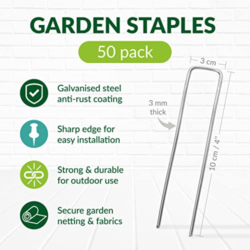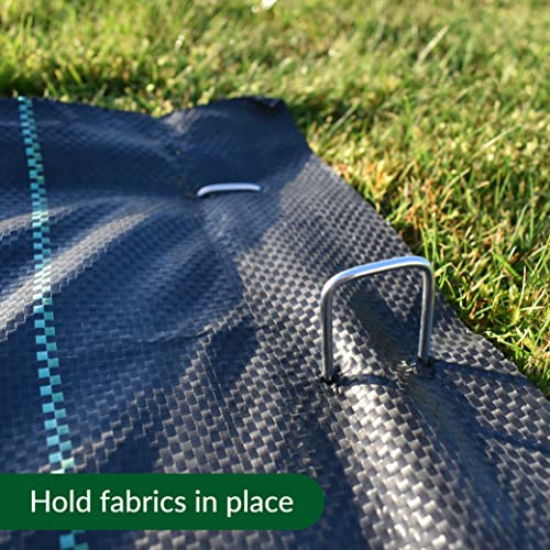 - 🌱【 Safely Secured Weed Barrier Fabric 】 Save yourself hours of time and easily secure your garden membrane with our garden staples. Made of the finest galvanised metal, you won't have to worry about rusting or rotting pegs. Keep your garden weed-free and enjoy the fruits of your labour when you use our U-shaped galvanised pegs for weed membrane.