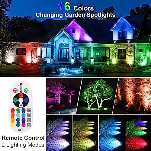 - 🌲【16 Colors Changing Garden Lights & Remote Control】This outdoor lights include 16 different colors and multicolored modes like red, green, blue, cyan, orange, yellow, amber, purple, pink, white, and so on. At the usual times, you can choose cool white or warm white to illuminate your garden, and you can use the multicolored modes to decorate your yards during holidays, such as Halloween, Christmas Days, or birthday parities. You can adjust the modes by wireless remote as you need.