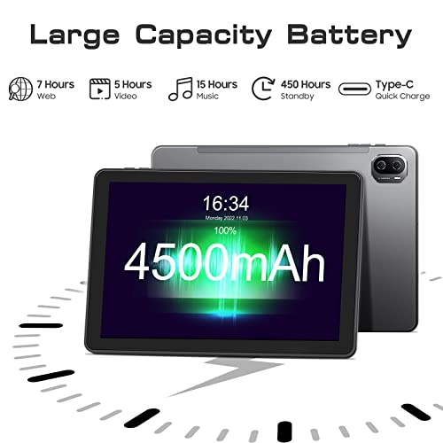 • 🔋【Media & Entertainment】Haehne Tablet 10 inch upgraded 4500mAh battery ensures longer use.Up to 7 hours of reading, browsing the web, watching video and listening to music. Type-C interface for easier charging. Fully charges in under 5 hours.Tablet equipped with 5MP rear camera and 2MP front camera to meet general video chat needs.