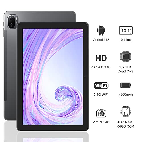 Haehne Tablet 10 inch, Android 12 Tablets PC, 1.6GHz Quad-Core Processor, 4GB RAM 64GB Storage, GMS Certified, 1280 * 800 HD IPS, 4500mAh, Dual C
