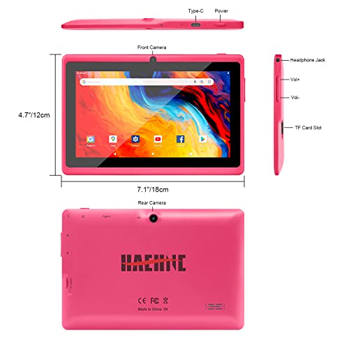 • 🔋【Large Capacity Configuration】Haehne 7 Inch Tablet has 2 GB RAM and 32 GB storage capacity. You can also expand the storage space capacity up to 128 GB through the Micro SD card to store songs, videos, photos and other files. The upgraded 2500 mAh battery makes the tablet use longer, allowing you to use the tablet longer than ever.