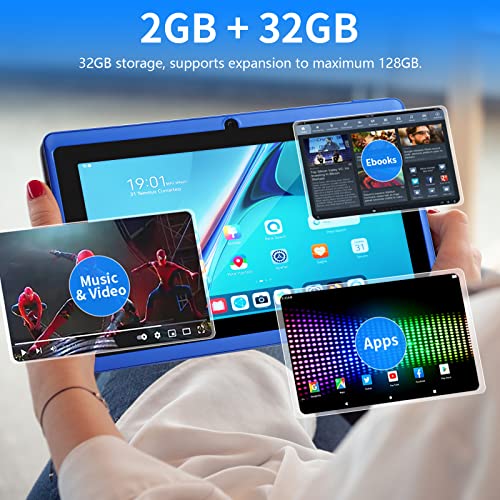 - 3, Large Capacity & Battery: 2GB RAM + 32GB ROM, enough to store your songs, videos, photos and other files. It also has a Micro SD card slot, which supports the most TF card 128GB. The 2500mAh battery allows you to watch, read and games at home or on the journey, and last for about 3 hours.