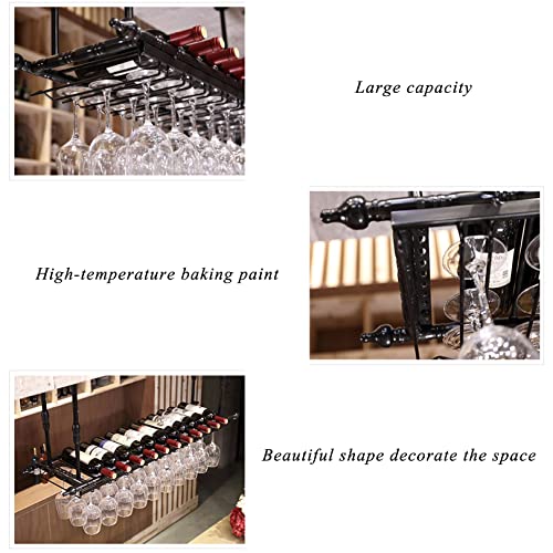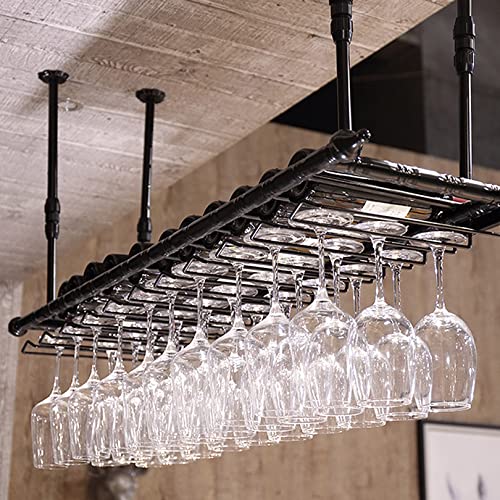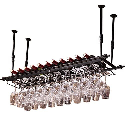Home Home Bar Furniture Hanging Wine Rack – Height Adjustable Hanging Wine Glass Rack, Ceiling Wine Bottle Holder with Glass Holder, Industrial Ceiling Shelf for Bar, Ca