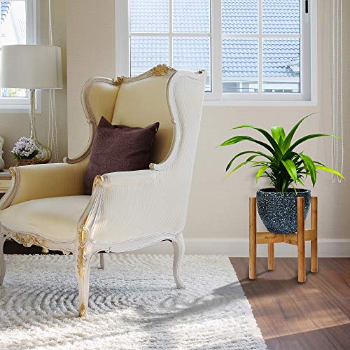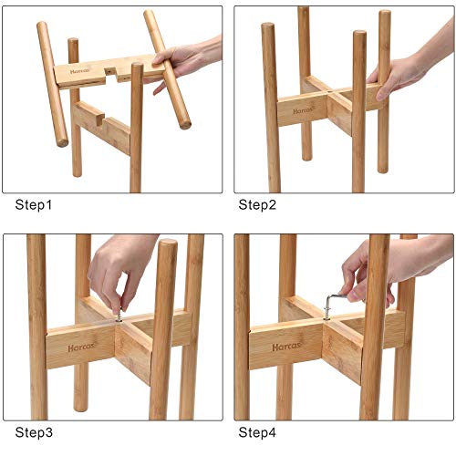 - EASY TO ASSEMBLY. With a few quick steps, you can set up the bamboo plant pot stand in seconds. Simply insert crossbar into the notch while upright, twist the screw and tighten up.