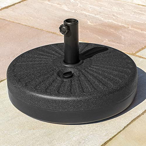 • WATER/SAND FILL - Premium round garden parasol stand weighs 23kg when filled with water & 35kg when filled with sand for additional anchorage & for maximum safety when your garden parasol is in use.