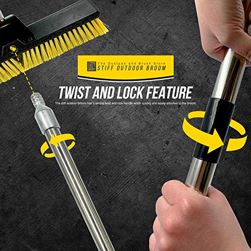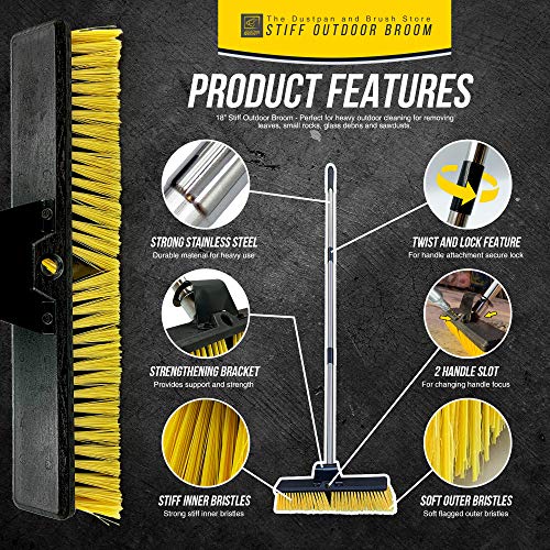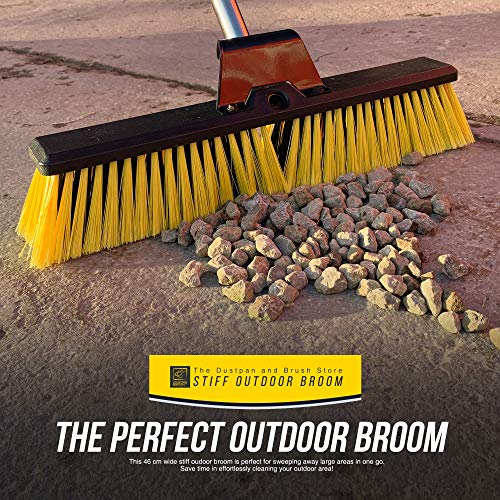 Heavy Duty Garden Broom Outdoor 18" Stiff Hard Brush & Metal Handle for Sweeping Your Yard, Garden & Decking