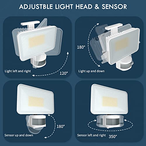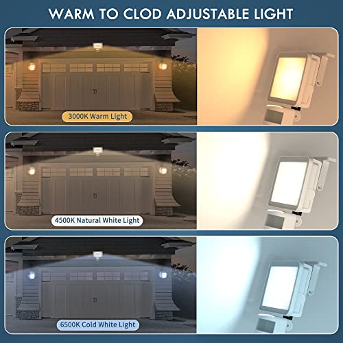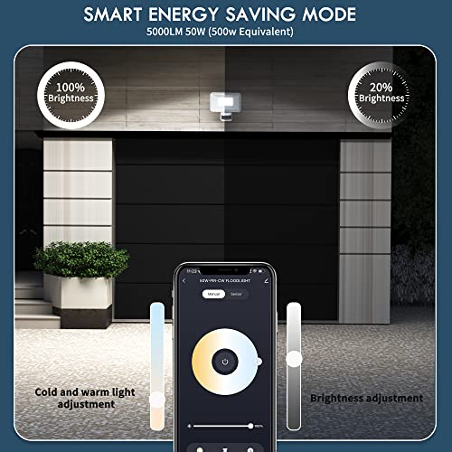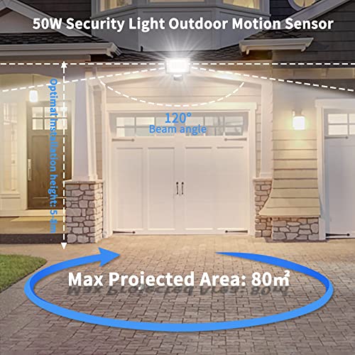 - 【Bright Adjustable Lighting】The 50W security light offer bright and uniform light, and produce up to 5000lm 3000~6500K lighting . You can also adjust the brightness freely to choose the warm or cold light. Suitable for docks, construction sites, stadiums, swimming pools, parking spaces, lawns, farms, warehouses.