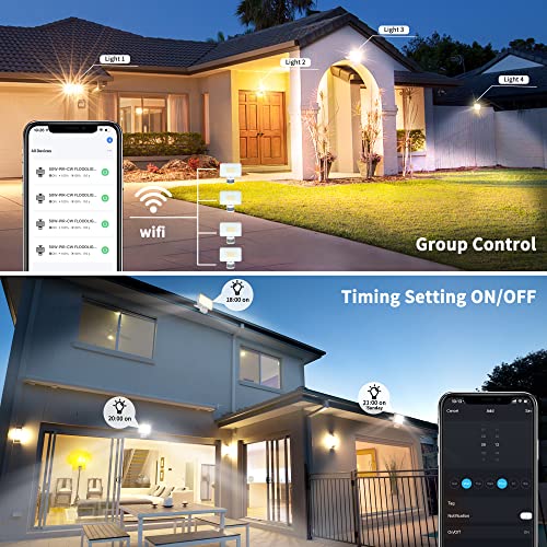 - 【Timing & Group Control】You can set LED flood lights to turn on or off at specific time, and adjust the brightness between 1% and 100% to fit for different lighting scenarios. Our smart led flood light can control any lights as your desire, and achieve overall or individual control of lights via custom groups at the same time.