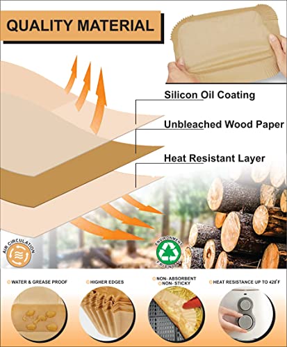 HHADIM | 120Pcs Ninja Air Fryer Liners, 8.7 Inch Disposable Air Fryer Parchment Paper Liner Rectangular, Ninja Airfryer Accessories Compatible wi