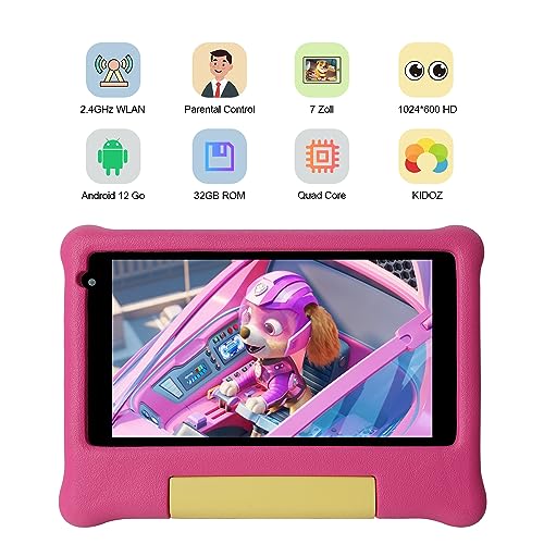 - Android 12 Go with 2GB RAM+32GB ROM: This 7 inch children tablet reserved 2GB Running memory and 32GB Storage memeory, satisfied with the daily use. Up to 3 hours of reading, surfing the internet, watching videos and listening to music.