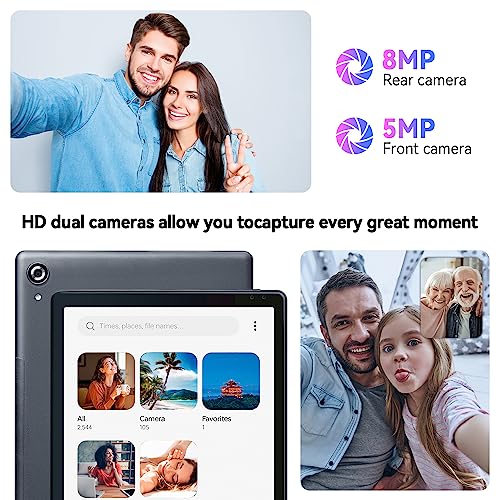 • 🎬Enjoy More Functions: The Android tablet adopts 10-inch IPS HD Screen, and has a super high resolution of 1280 x 800 and a 7mm ultra-narrow bezel of the same size. The tablet adopts the WiFi 6 technology and has a built-in dual-band WIFI chip. 5G WiFi and 2.4G WiFi are more stable. Plus, the latest Bluetooth 5.0 connection features faster data transfer speeds. Equipped with a clear 5-megapixel front camera and 8-megapixel rear camera, record every moment in your life.