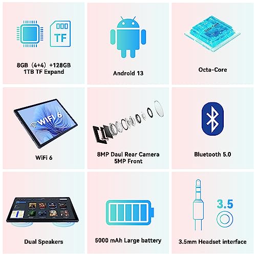 HiGrace Tablet 10 inch, Android 13 Octa core Tablets with 8GB+128GB/1 TB, WiFi 6, 5MP+8MP Camera, Bluetooth 5.0, Tablet PC with Google GMS Certif