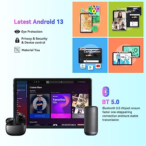 • 🚀Android 13 tablet privacy and security: HiGrace 10-inch tablet uses the latest operating system “Android 13”. The Android 13 has upgraded personal privacy protection and security, and has personalized functions to improve basic fluency And control application access to data. Using an Android 13 tablet is smoother and faster. Not only experience stable Google services, but also install favorite third-party applications such as Netflix/YouTube/Facebook/Twitter.
