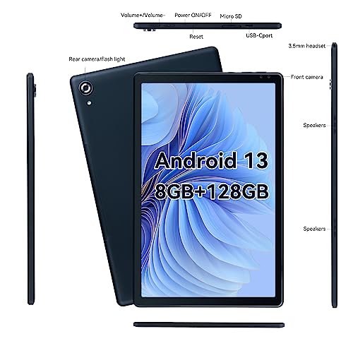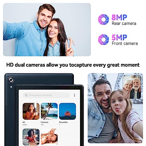 - 🎬Enjoy More Functions: The Android tablet adopts 10-inch IPS HD Screen, and has a super high resolution of 1280 x 800 and a 7mm ultra-narrow bezel of the same size. The tablet adopts the WiFi 6 technology and has a built-in dual-band WIFI chip. 5G WiFi and 2.4G WiFi are more stable. Plus, the latest Bluetooth 5.0 connection features faster data transfer speeds. Equipped with a clear 5-megapixel front camera and 8-megapixel rear camera, record every moment in your life.