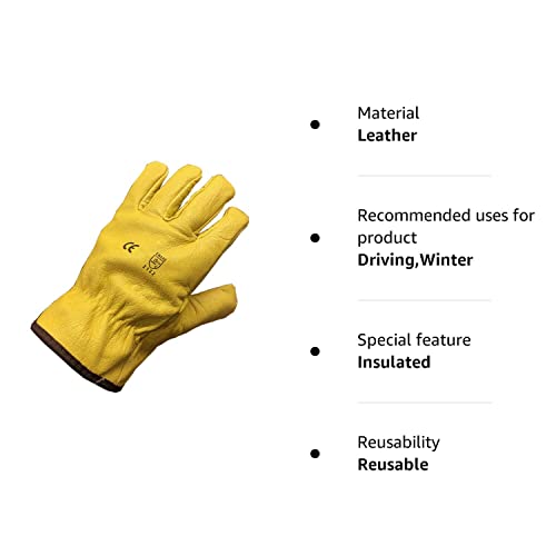 Home Garden & Outdoors Himalayan Men’s H310 Fleece Lined Leather Winter Thermal Cold Work Drivers PPE Gloves, Yellow, M (Pack of 2)
