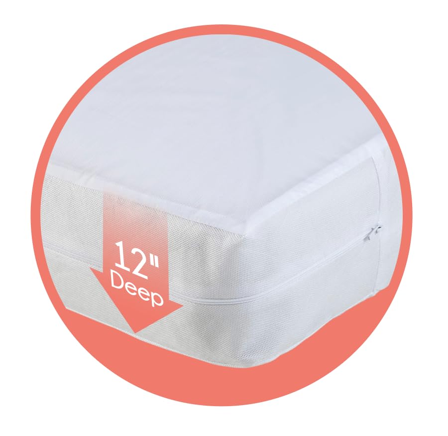• Home Expressions Zippered Mattress Protector 12″ Deep 80″x60″ (Queen)